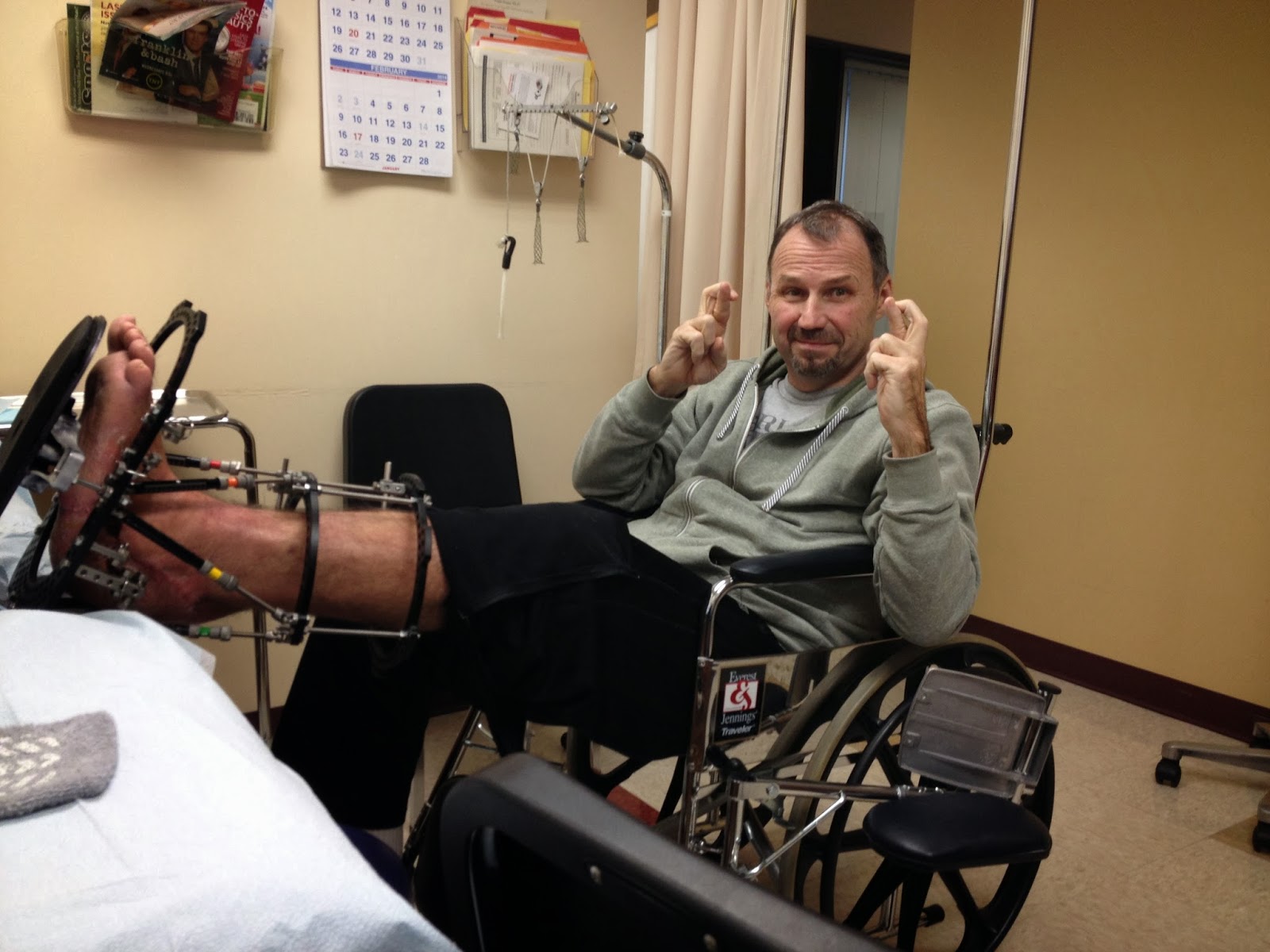 Going to do a little internal sole searching and thinking for a few days as I NEED to be more productive, find a job and get back to work! My initial thoughts are to hit the PT activities hard, there's nothing holding me back now and Dr. Gellman said to put all the weight I want on my leg. My goal will be to get enough flexibility back in my ankle so I can walk without a crutch, I can a little bit now but it's not a effortless walk by any objective view. I most likely will not get it all the flexibility back as like my leg, the ankle has seen a lot of trauma and although the bones have healed they heal in such a way that they restrict the foot's movement. Gellman said he could put the frame back on my ankle and work to force the foot to move more but that would take months. He knows how much I hated that thing and the net result wouldn't be much different than what I should be able to get with PT so forget that idea!